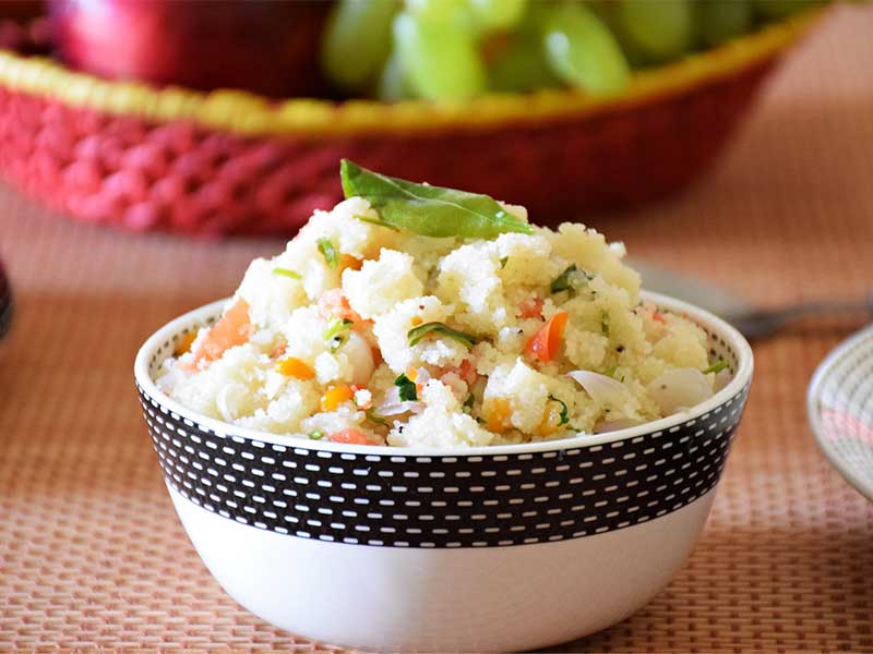 Recipe name: Upma Ingredients: Semolina / Rava / Sooji Mix vegetables (carrot, French beans, pumpkin, peas, etc) Water Ghee Tender Leaves turmeric powder Tender Leaves cumin seeds Tender Leaves bay leaf Tender Leaves cloves Cooking procedure: In a pan dry roast the rava until it turns a little brown. Meanwhile, put half